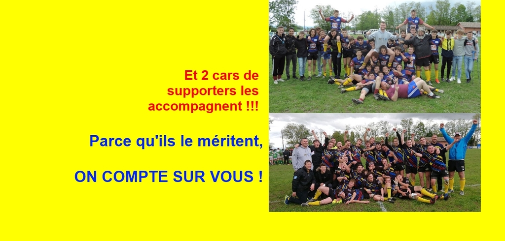 Et bien oui vous avez été partants : 2 cars de supporters se déplaceront ce samedi même s'il reste encore quelques places dans le 2e car. Il fera un arrêt à 11h20 à Pont-de-Veyle.