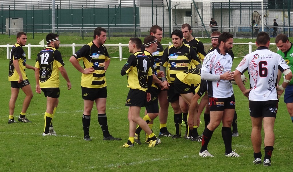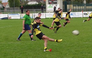 Nous arrivons a les priver de ballon pendant le premier quart d'heure. Notre défense tient bon sauf sur deux erreurs de montée défensive ce qui permet aux locaux de prendre l'avantage à la mi temps sur le score 15 à 9.