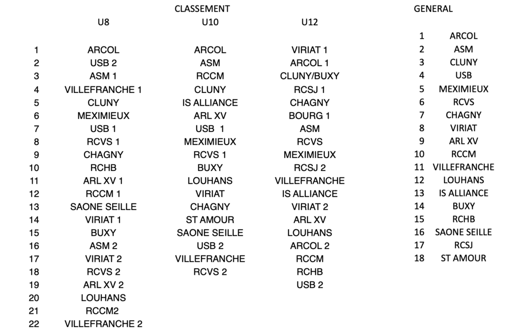 Voici les classements par catégories et le classement général du tournoi du 1er mai